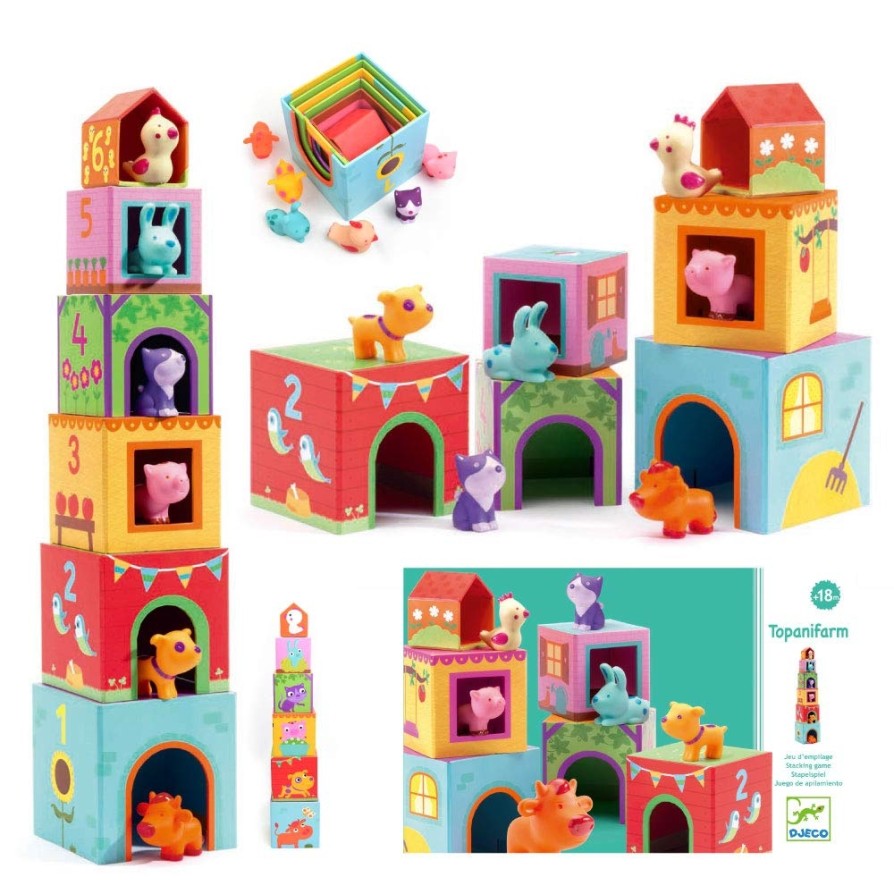 Costruzione Djeco impilabile con sei animaletti diversi.