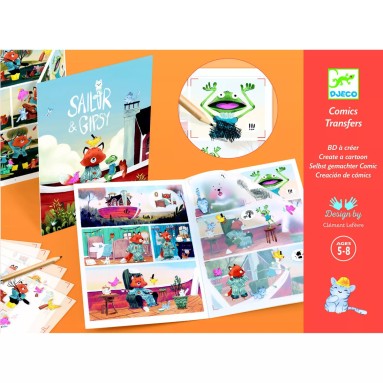 Crea il tuo fumetto utilizzando la tecnica della decalcomania: sfregando le immagini con la matita, il trasferimento avviene sullo scenario. Passo dopo passo, i bambini posizionano gli elementi sulle schede illustrate per completare la storia che prende forma davanti ai loro occhi.