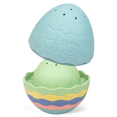 Che si tratti di giochi d'acqua all'aperto o di un invitante giocattolo per il bagnetto, il design intelligente di Bath Egg offre ore di gioco: la possibilità di impilare e ordinare questo giocattolo unico garantisce un sacco di divertimento, mentre i diversi effetti dell'acqua creati dal particolare motivo dei fori di ogni tazza lo rendono un ottimo giocattolo per coinvolgere i sensi.