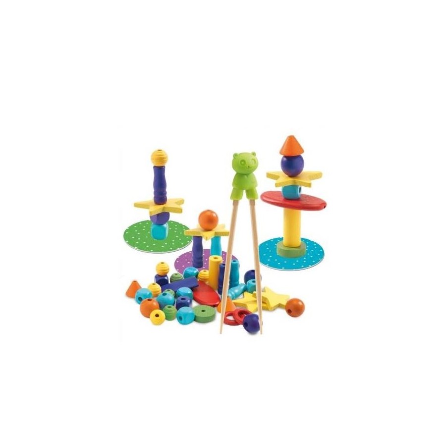Ciascun giocatore deve riprodurre l'immagine raffigurata sulla propria carta raccogliendo le perline dal mucchio prima dei loro avversari. Sembra facile, ma c'è un problema! I giocatori devono usare le bacchette per maneggiare le perle e se la torre cade, tornano al punto di partenza.