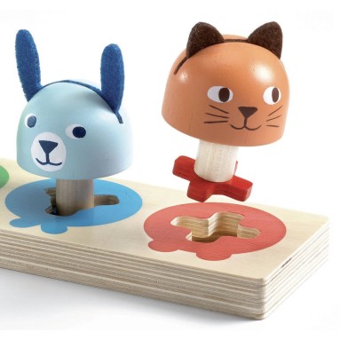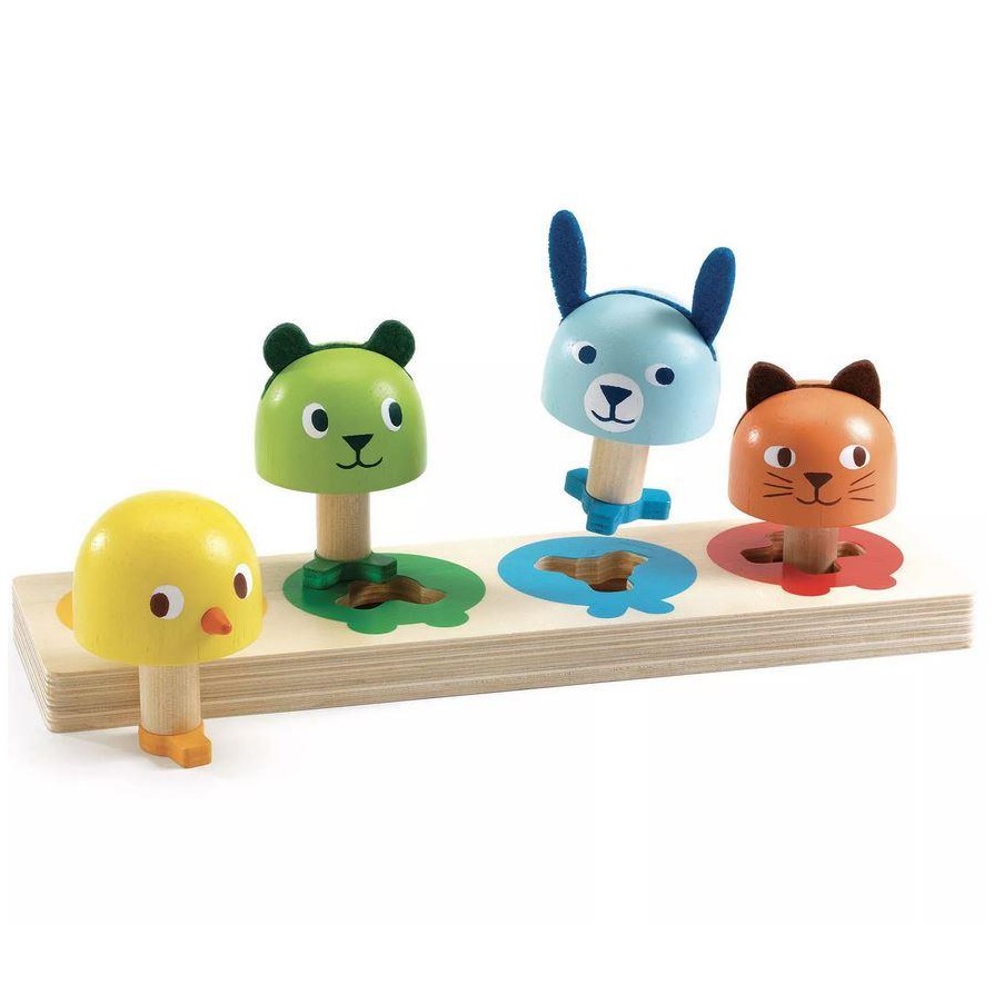 Quattro graziosi animaletti da posizionare per sviluppare la manualità e la motricità fine nei bambini dai 18 mesi ma non solo, Tournik aiuta a stimolare il ragionamento e a coordinazione mano-occhio.