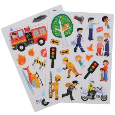 Evita disastri, salva gattini, combatti incendi e gestisci il traffico con qeusto scenario pieghevole doppio con due fogli di stickers magnetici.