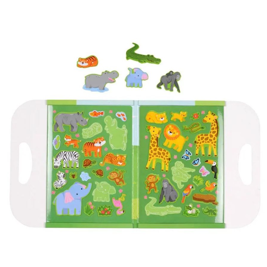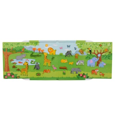 Questo libri magnetico consente ai bambini di creare sempre nuove scene grazie agli stickers magnetici attacca e stacca rtema Giungla