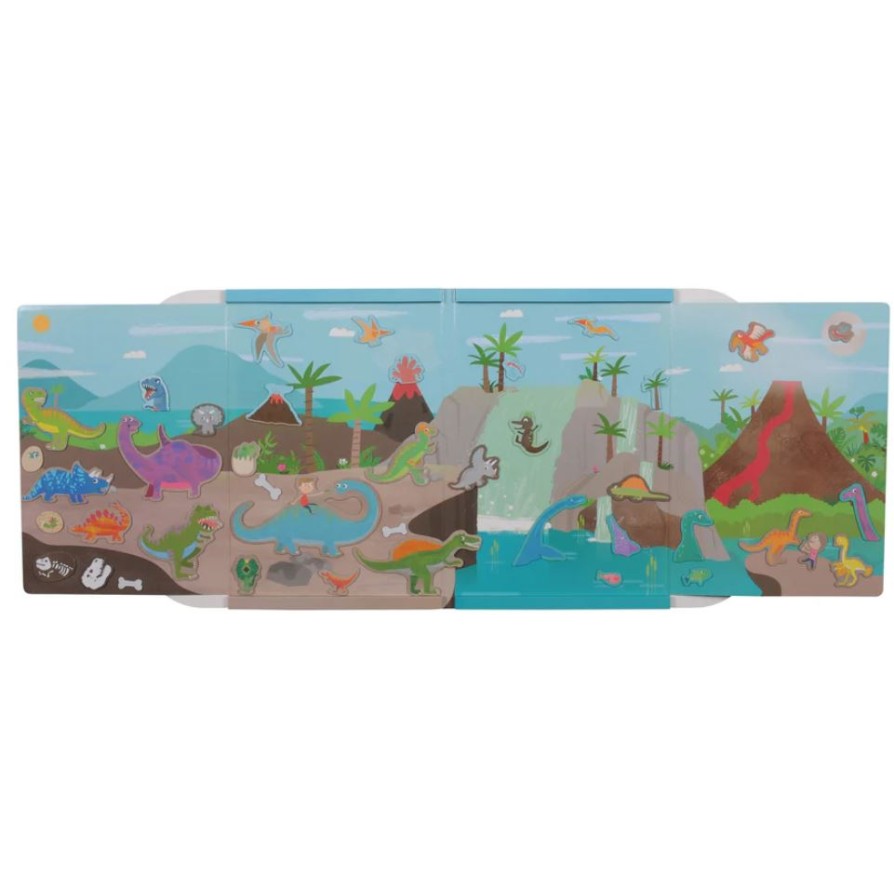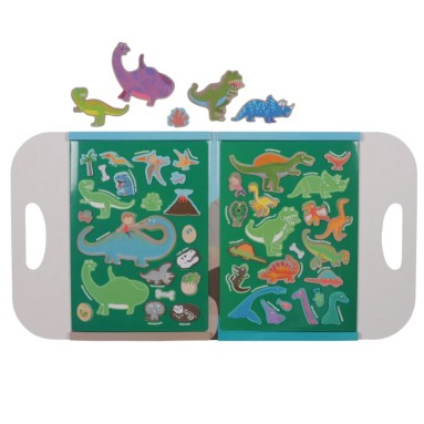 Questo libri magnetico consente ai bambini di creare sempre nuove scene grazie agli stickers magnetici attacca e stacca tema Dinosauri.