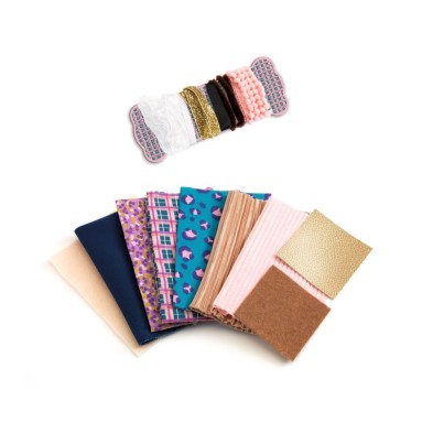 Un set ideale per giovani stilisti/e in erba che non hanno bisogno di saper tenere un ago, ma che permette di creare una propria linea con tessuti veri!