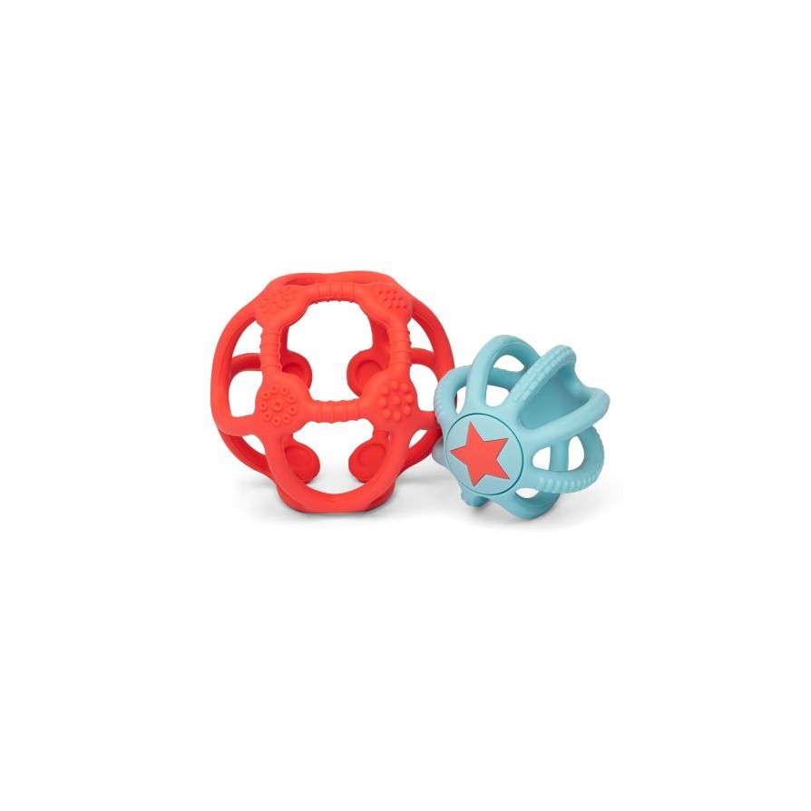 Due palline sensoriali sono perfette per intrattenere i bambini e aiutarli a sviluppare la motricità fine e l'osservazione. Realizzate in silicone (senza bpa, senza pvc, senza lattice e senza ftalati) sono ideali anche come massaggiagengive durante la dentizione.