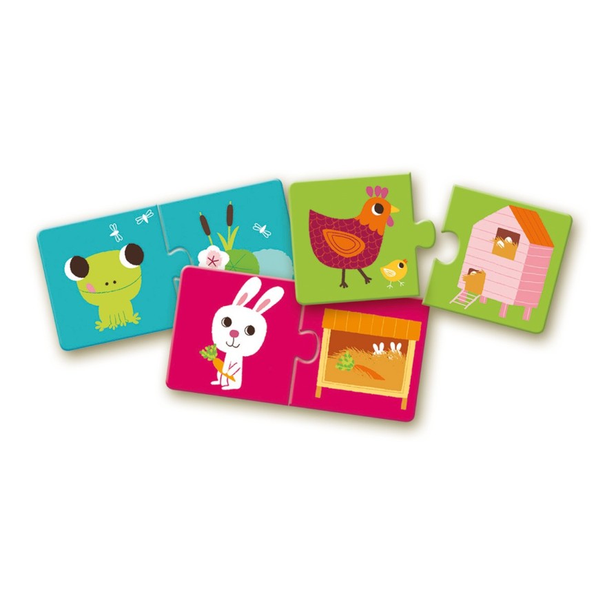 Un primo puzzle perfetto per i bambini più piccoli, ciascuna figura è composta da 2 pezzi: il bambino dovrà associare l'animaletto al suo habitat naturale.
