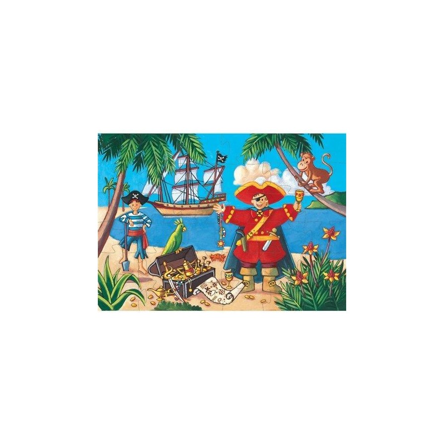 Un puzzle composto da 36 pezzi che ritrae un pirata con il tesoro su un'isola deserta.